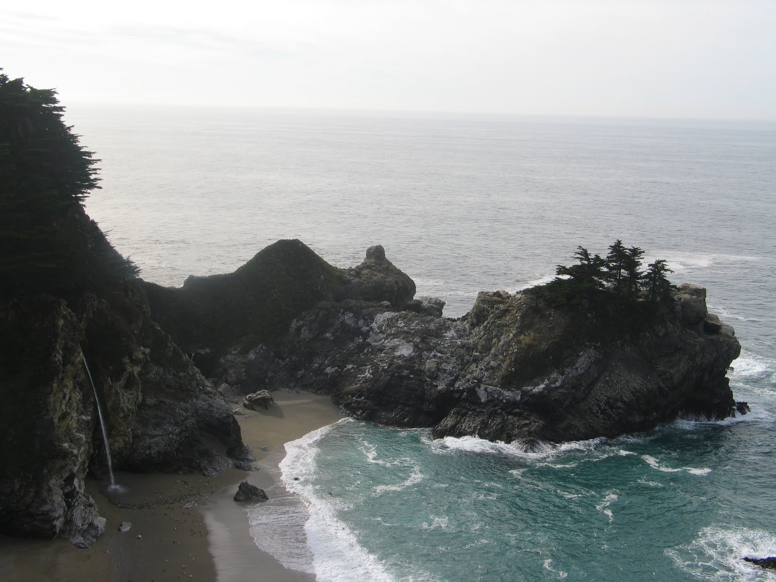 Probably the coolest part of the day was a stop at Julia Pfeiffer Burns State Park, where McWay waterfall spews from the rocky cliffs right onto the sand. It’s just a short hike out to the viewpoint, where you can see this kind of thing (look for the waterfall on the left, just dumping onto the sand. I found that so weird):