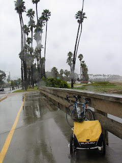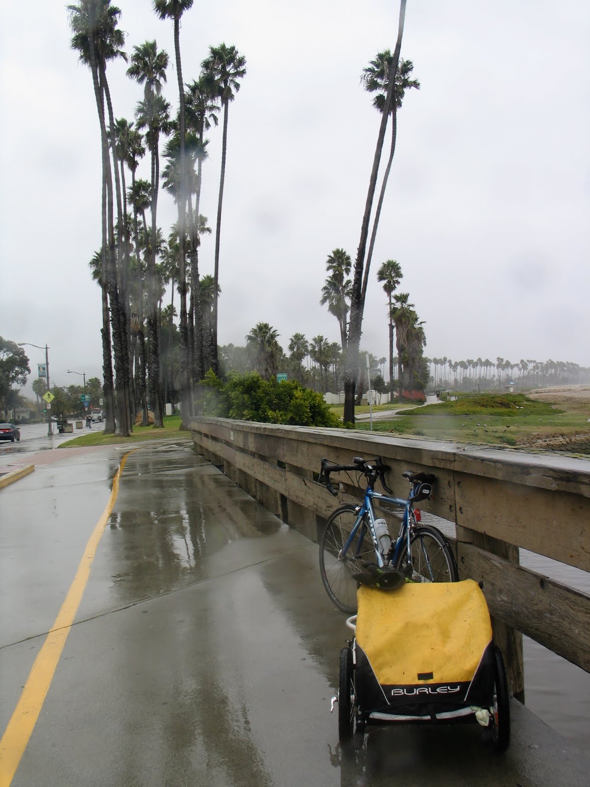This last day of my trip didn’t honestly feel as much like the rest of it. Especially once I found the hotel that mom and I would stay in and ditched my trailer, biking around Santa Barbara felt pretty comparable to biking around Portland (the rain probably hugely contributed to that perception). Of course, I only had to look around at the palm trees–even as they peeked out through the clouds–to remember that I was, in fact, almost a thousand miles away.