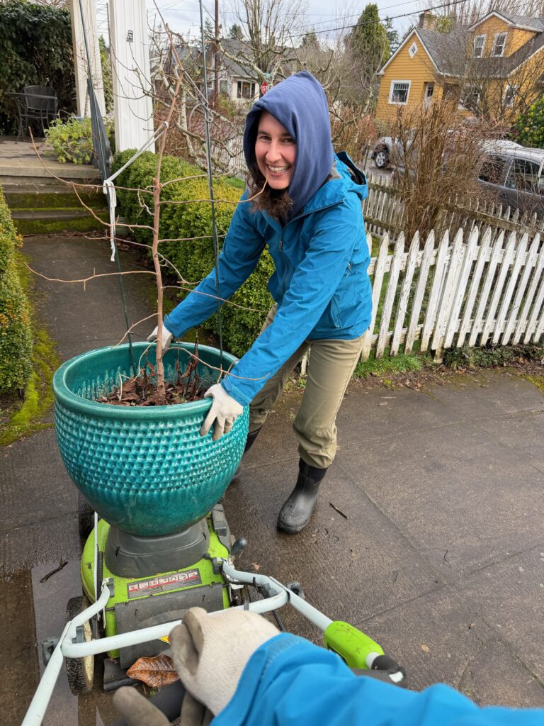 Planting this tree in our neighbor’s yard took me a lot of emotional work. heh. I love this little persimmon tree so very dearly, and it was sooo hard to “give it up” and put it somewhere that isn’t our house. Especially because I feel very attached to it at this point and want to know that it’s getting good care. BUT, it’s right next door, and I am still going to care for it, and in that sense I feel like I’ve expanded my world into my neighbor’s yard too — or maybe rather, that our two worlds have become just a little bit more intertwined in service to our sweet neighborhood ecosystem.